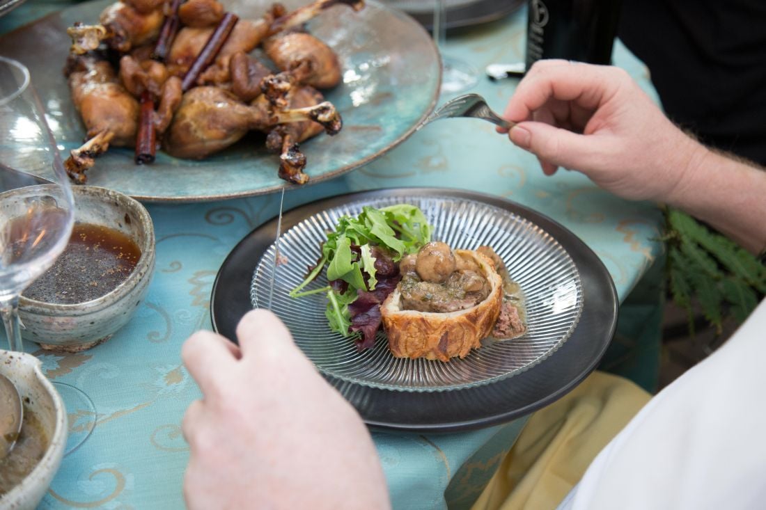 קערה עם מרק קרם-כרישה חם וטעים שגרם לנו ללגום קצת יין לבן עד שהשיחה הפכה מעצבנית-מורעבת לשמחה וקולנית. גם מנת הביניים של שטרודל ממולא בבשר הייתה הצלחה גדולה, בעיקר אצל הילדים שמיהרו לקחת עוד חתיכה, בעוד המבוגרים מצדם התפנקו דווקא על התוספת של כרוב בטימין שהגשתי לצד השטרודל. בזווית העין ראיתי מישהו מוזג לעצמו טיפה אחרונה של סוביניון-בלאן שעבד נפלא עם המרק ופותח בקבוק של פינו-נואר ששלף ממקרר היין – האמת? רעיון לא רע בכלל!