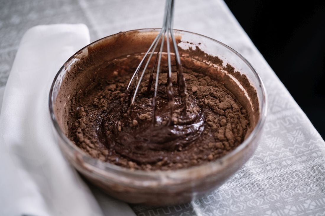 מקציפים את החלמונים עם הסוכר לקרם בהיר ותפוח ומקפלים לתוך הגנאש. מנפים ומערבבים לתוך הגנאש את הקקאו. מוסיפים בהדרגה גם את השמנת (ללא הקצפה) וטורפים בעדינות.