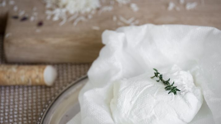 שמנת חמוצה מצומצמת אחרי לילה של סינון בבד גבינה. צילום: רויטל כהני
